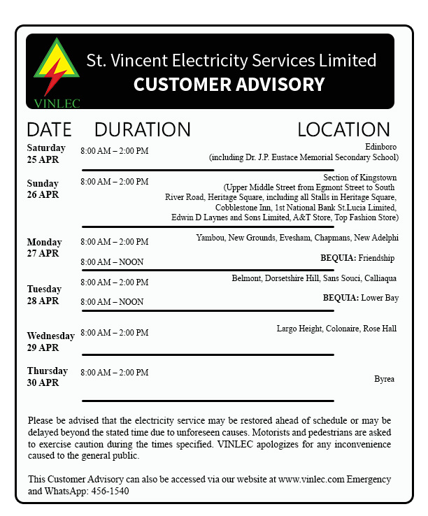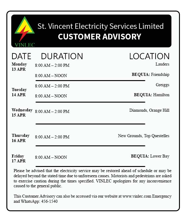 Planned Outages - It is sometimes necessary to interrupt power supply to customers to carry out maintenance work. In these instances, VINLEC notifies customers in advance.