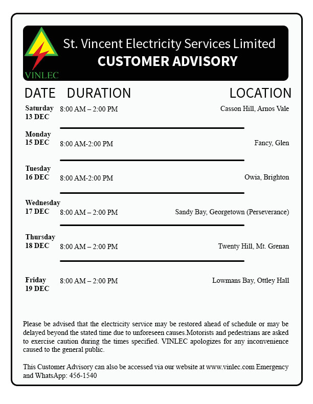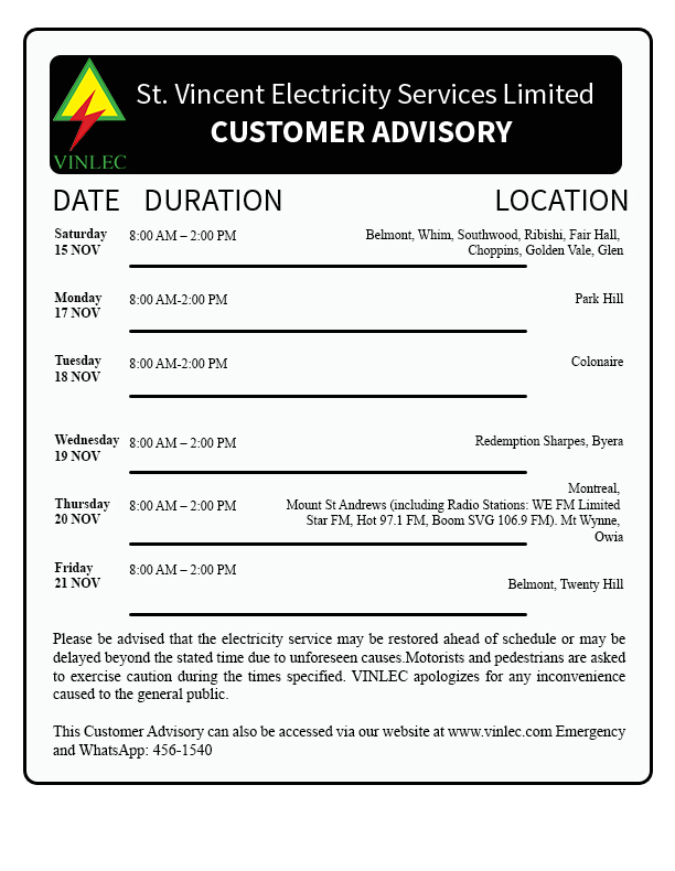 Planned Outages - It is sometimes necessary to interrupt power supply to customers to carry out maintenance work. In these instances, VINLEC notifies customers in advance.